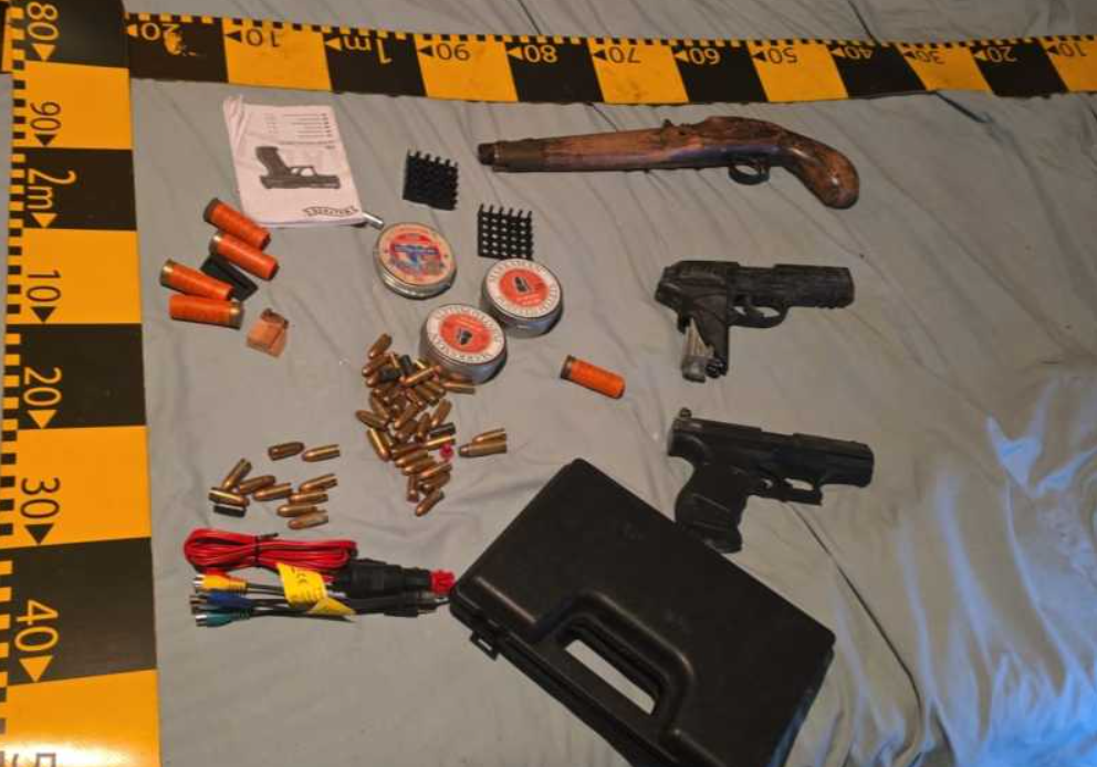 Patru pistoale și 1.000 de cartușe deținute ilegal, găsite de polițiști în casa unui bărbat